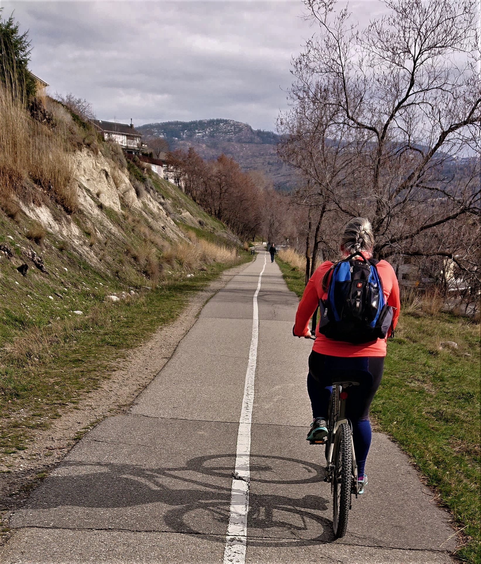 It was a cool but clear day…..its such a lovely trail with a very gradual incline. In the fall there were only glimpses of the lake through the vineyards and apple orchards that line the route. In March tho, the view is clear across the valley.
