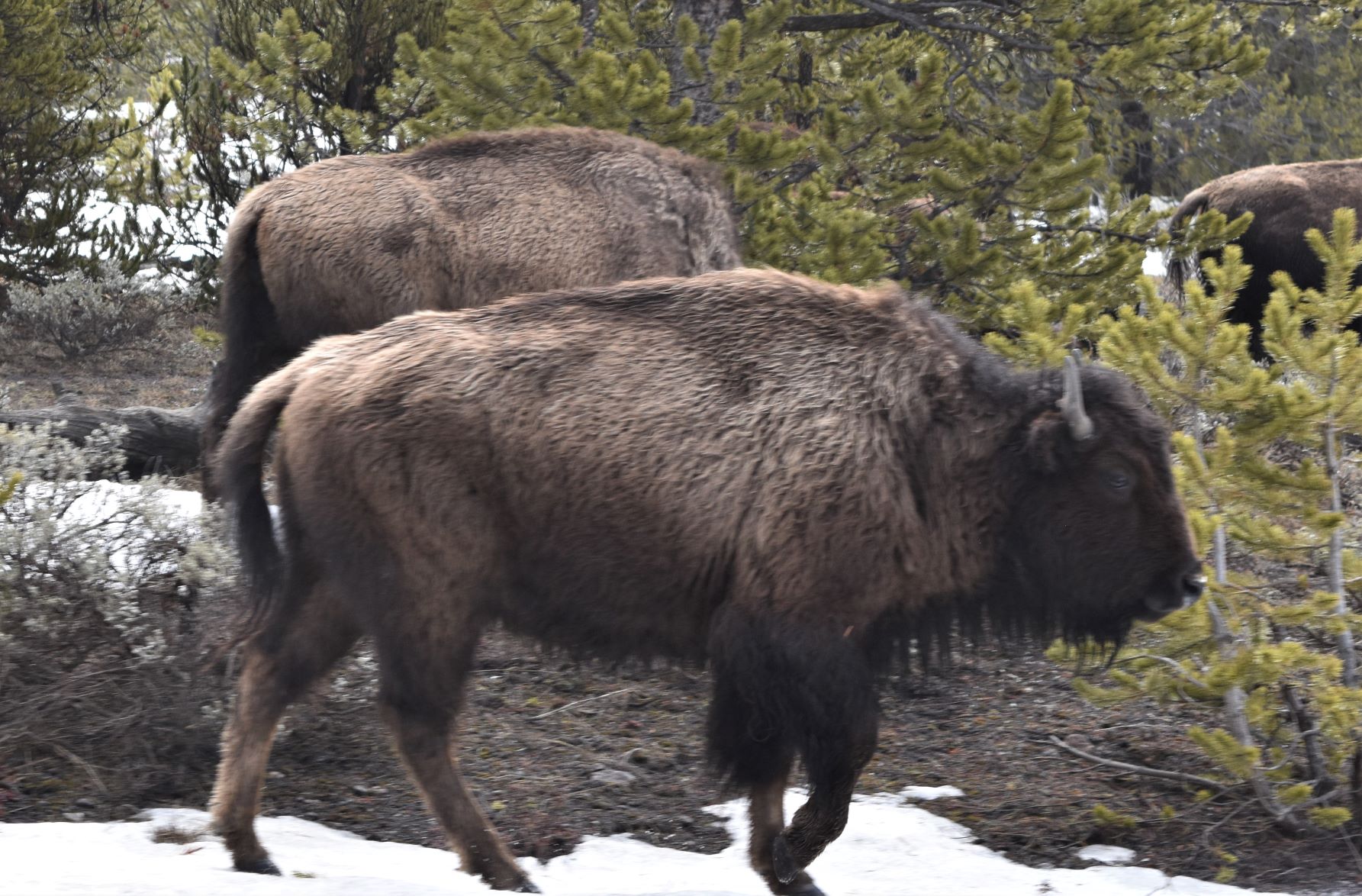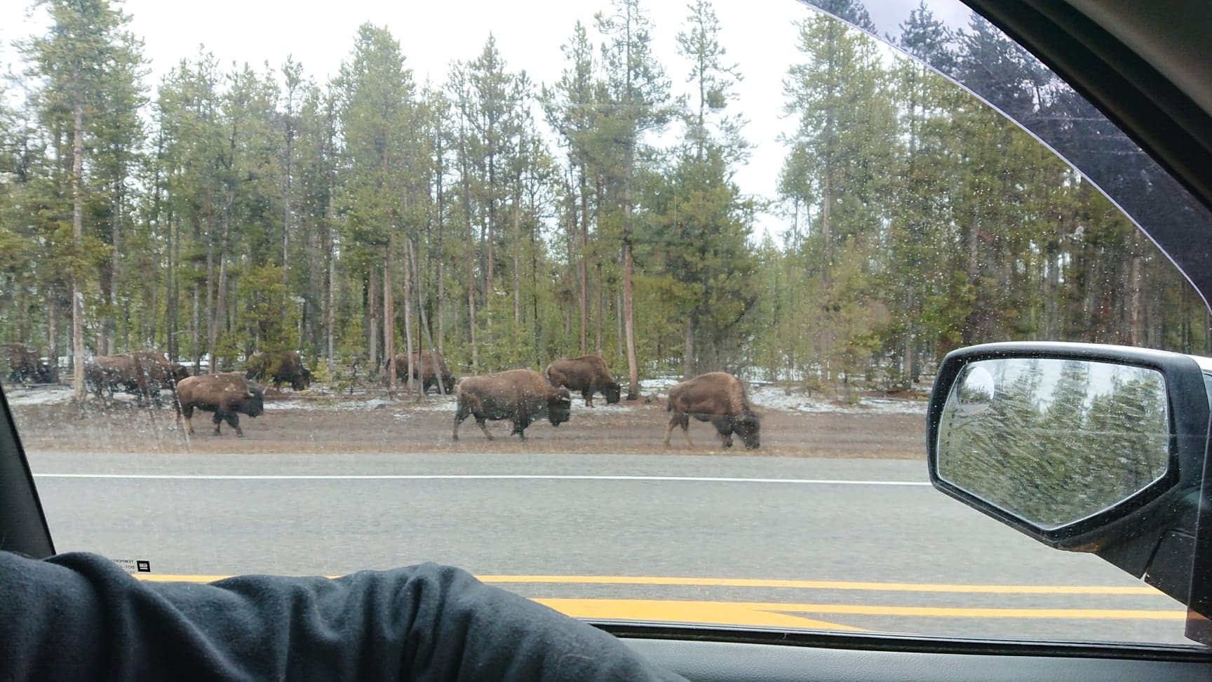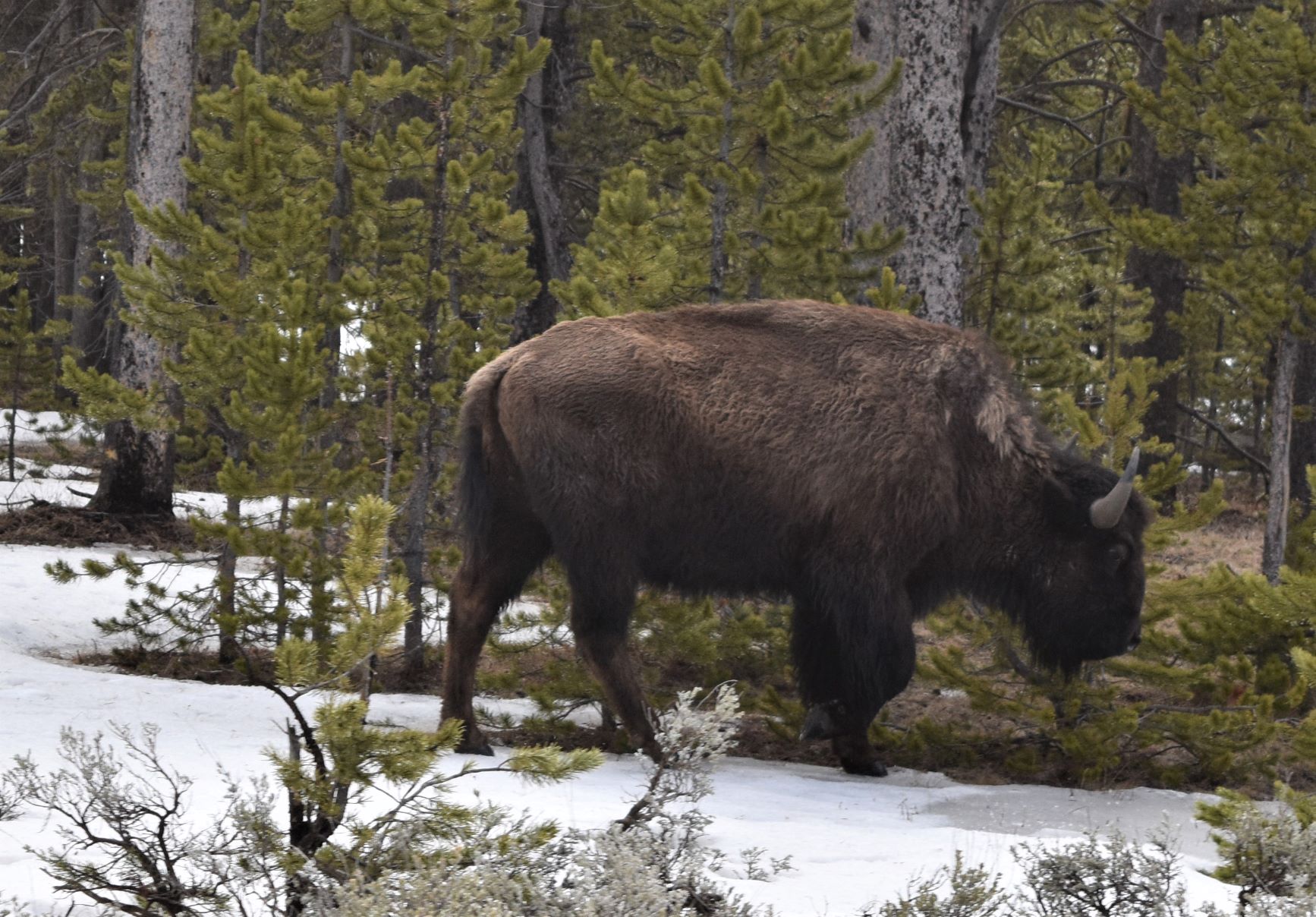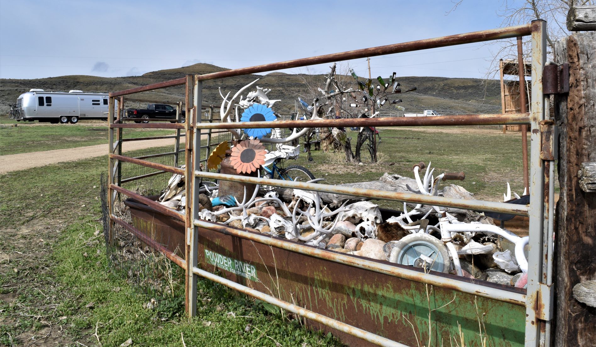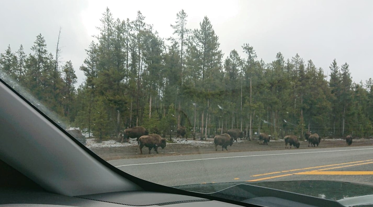 We passed a large bison herd…but there were many cars stopped for pix…so we drove on. The road is pretty lumpy…which makes for interesting driving as the trailer porpoise bounces along…!!