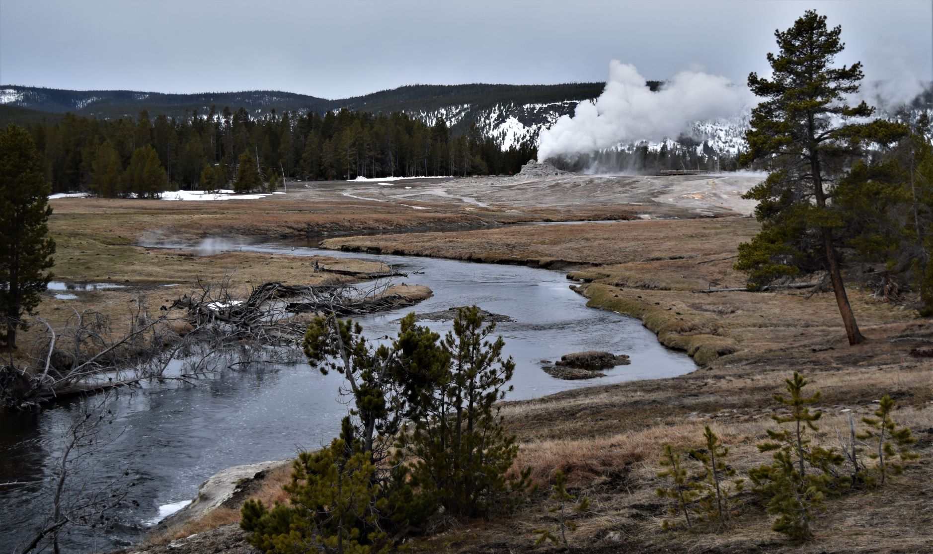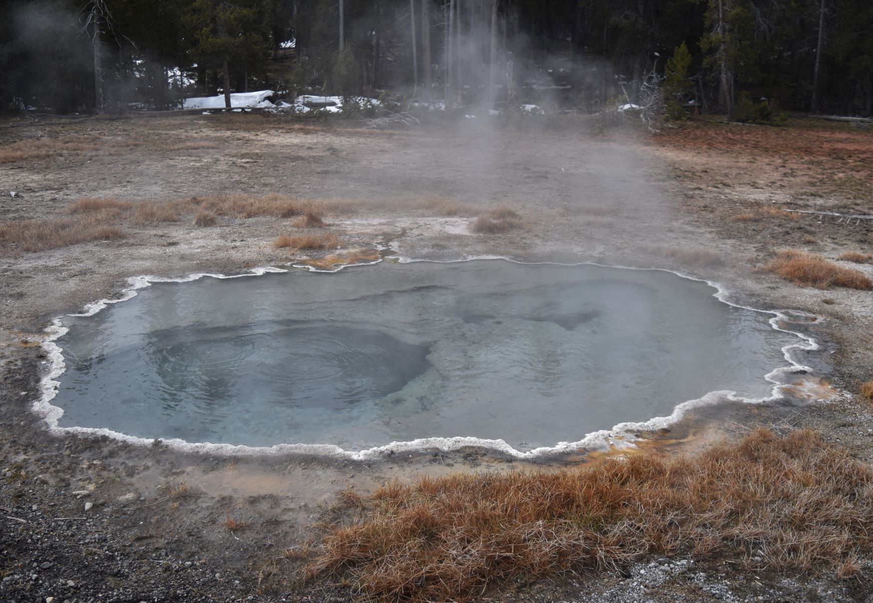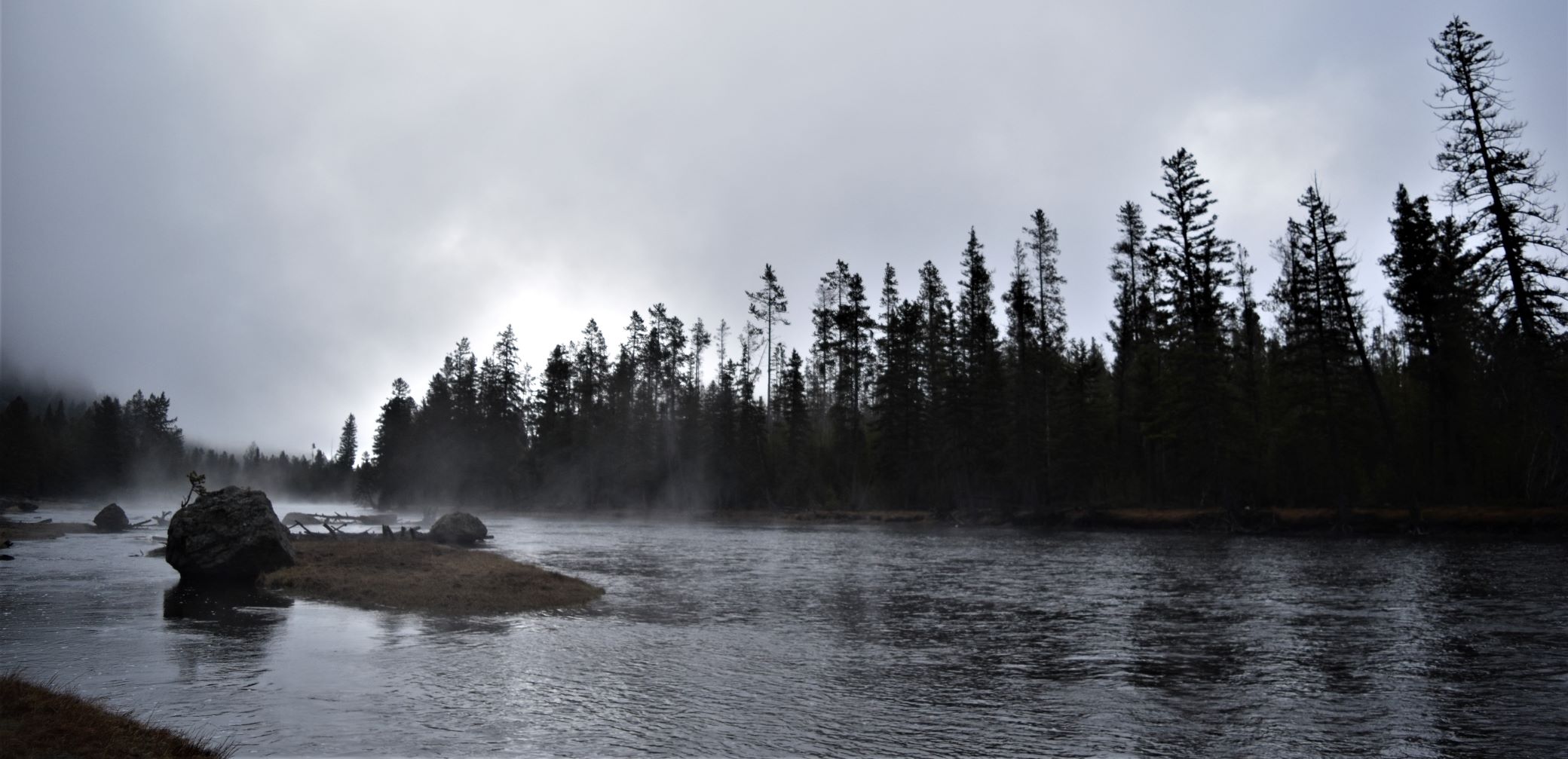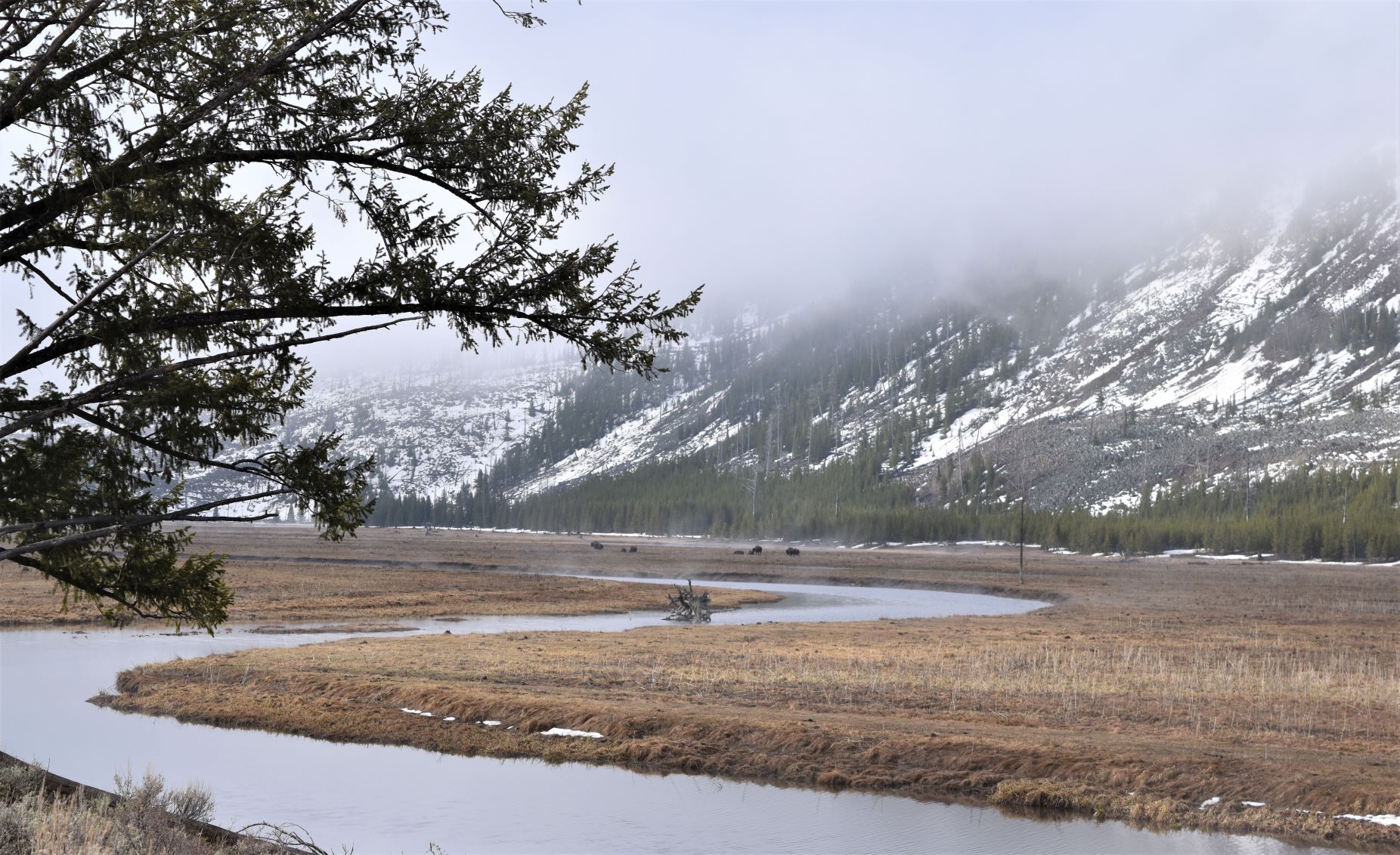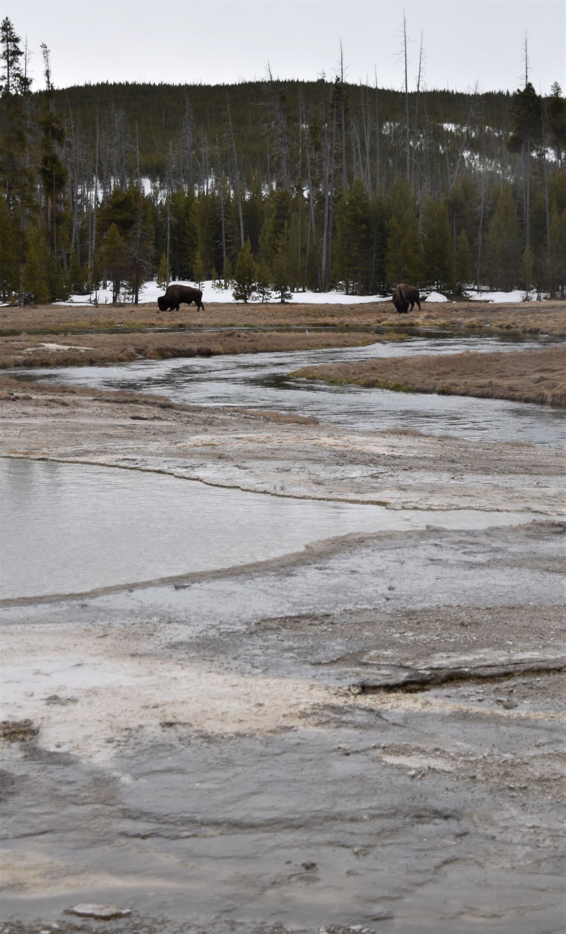 We passed a large bison herd…but there were many cars stopped for pix…so we drove on. The road is pretty lumpy…which makes for interesting driving as the trailer porpoise bounces along…!!