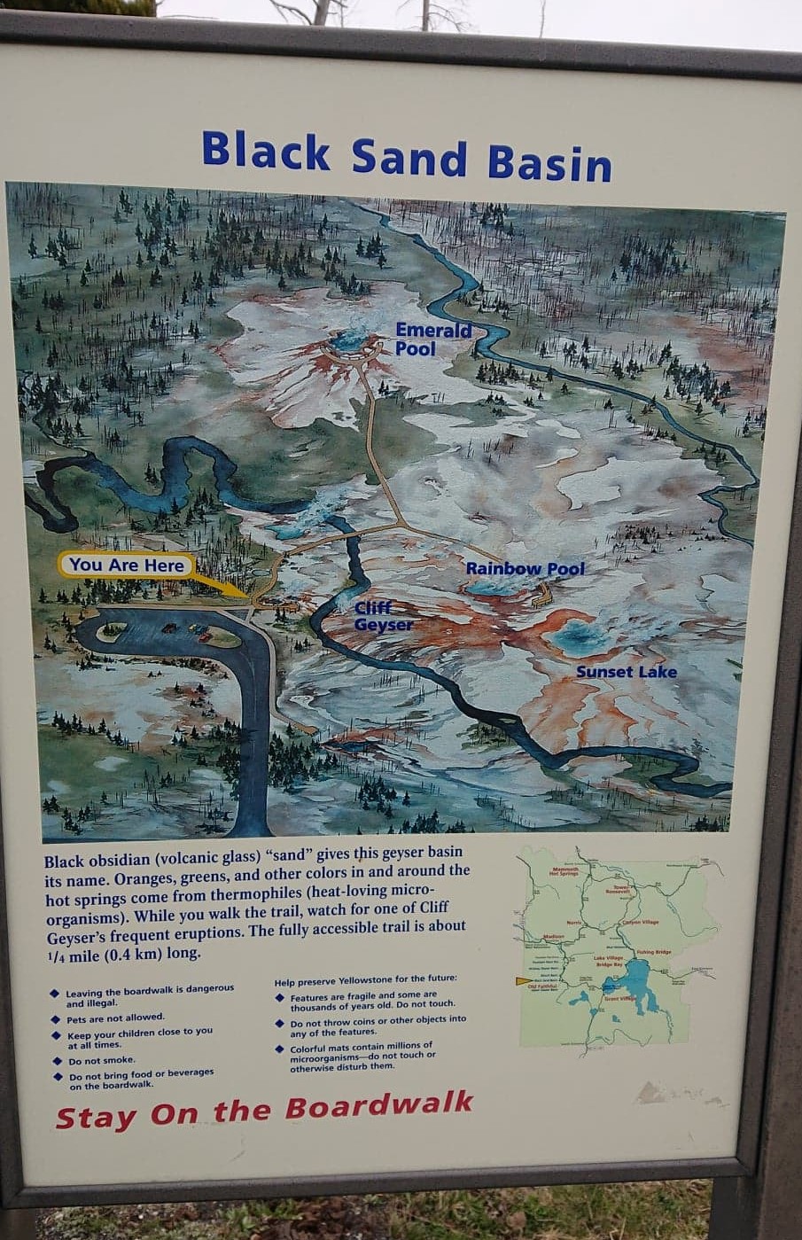 After that rain, (the Badlands apparently get 16 inches per year…….4 of them happened while we were there..!!) the whole place turns to mud…and thick sticky clay mud at that…….so we did the short scenic walks , all on boardwalks, to let everything drain a bit more before doing a longer hike.