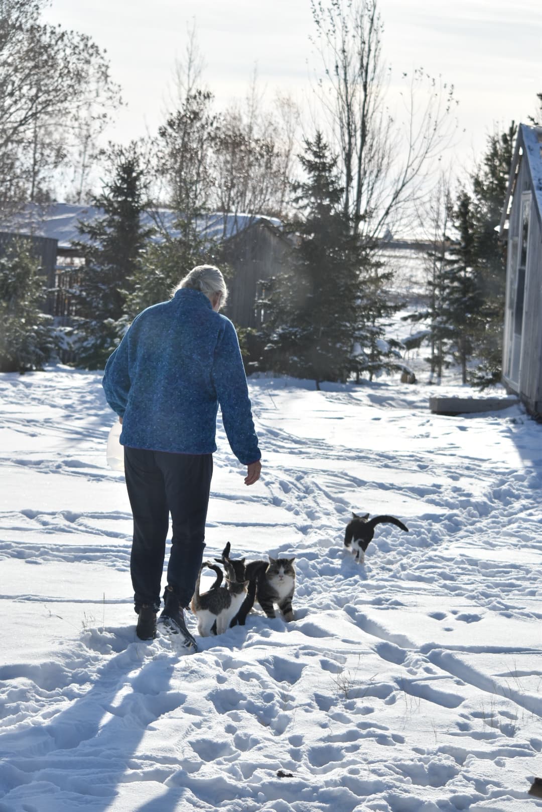 Before beginning this next mini adventure, I have to share my little troupe of barn kittens………eagerly headed for their breakfast table (the greenhouse…!!)