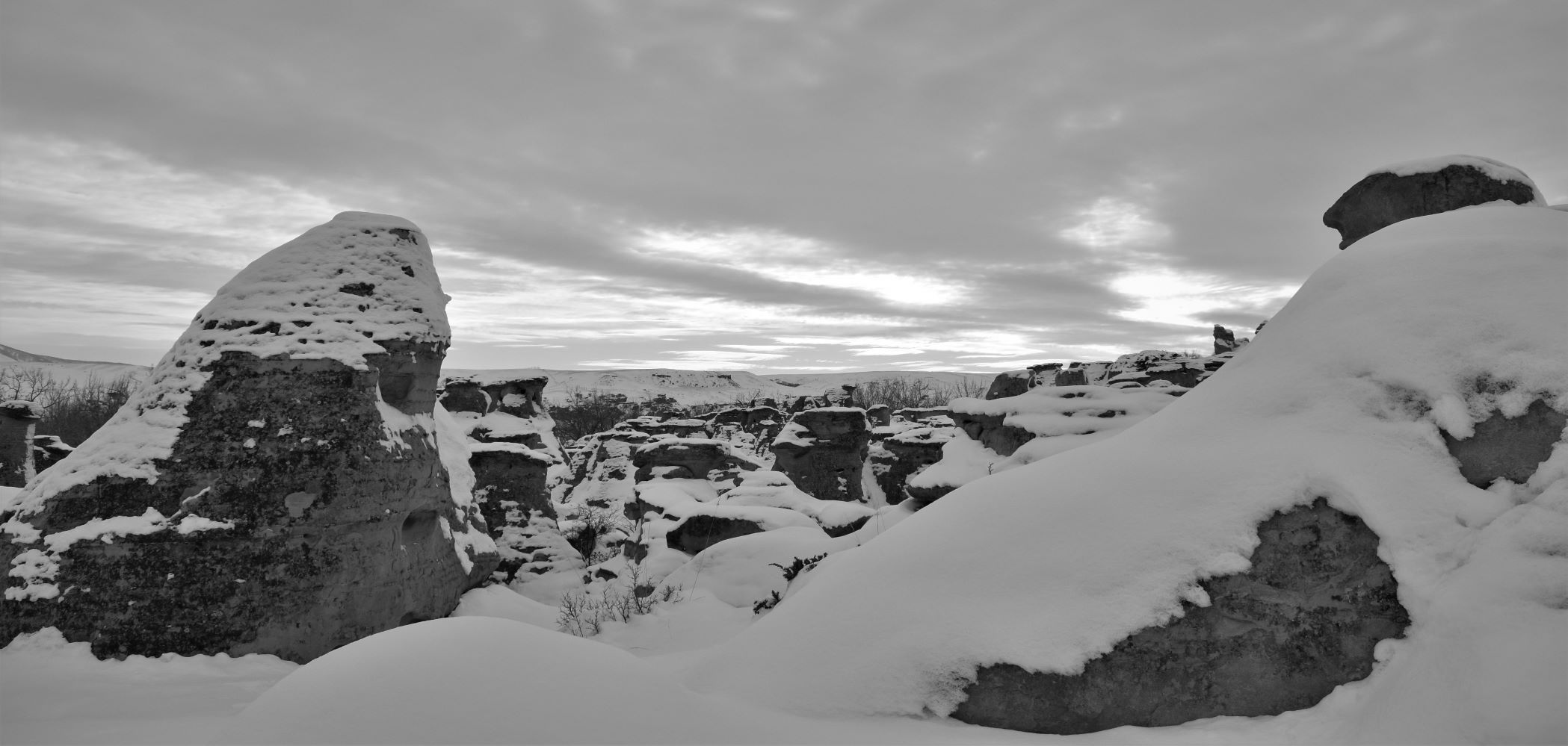 The weather ‘broke’…. well…… it warmed up to -3 Celsius…so we took advantage and escaped the driveway (it has spent much of the last few weeks buried under drifting snow…!!) and headed for Writing-on-Stone Provincial Park.