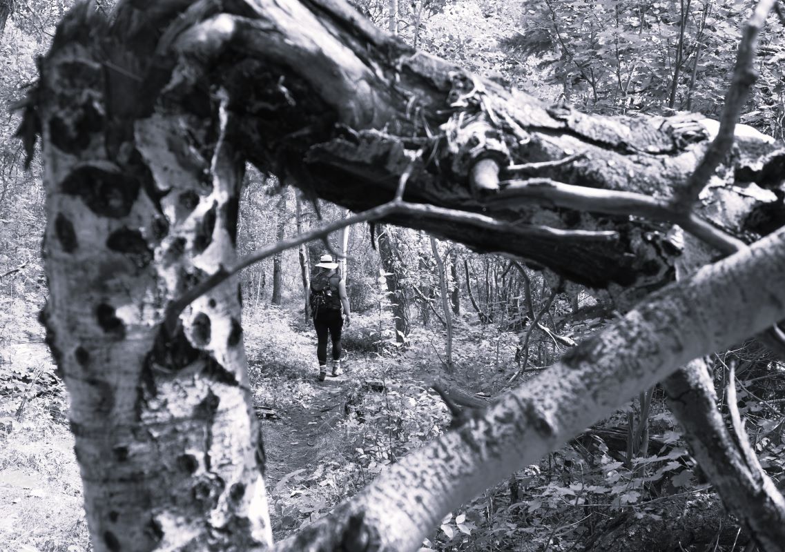 The trail came out of the tree cover and across a meadow……so when we found ‘Joes Trail’ back along the creek bank…….we took it….