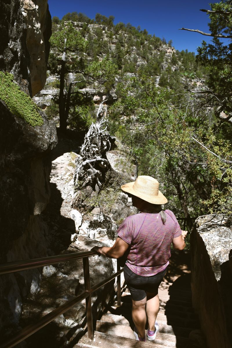 There are stairs down to the structures and a trail around them …and did I mention that it was sweltering hot…!!!